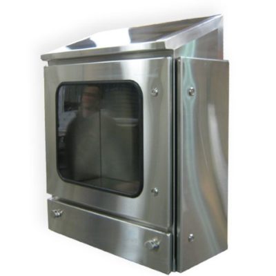 Stainless Steel Control Cabinets – Wall Mount Double Door Sloped (48″Hx48″Wx12″D)