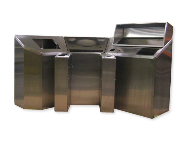 SS Oil rig console for chart recorders and various gauges. Two arm chair additions for running the joystick control.