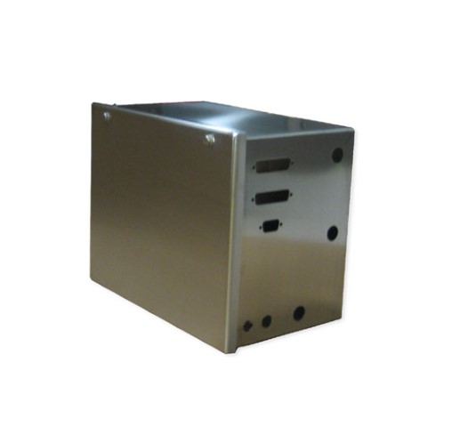 Hinged junction box with bolt latching. Used for printing labels on food processing floor.